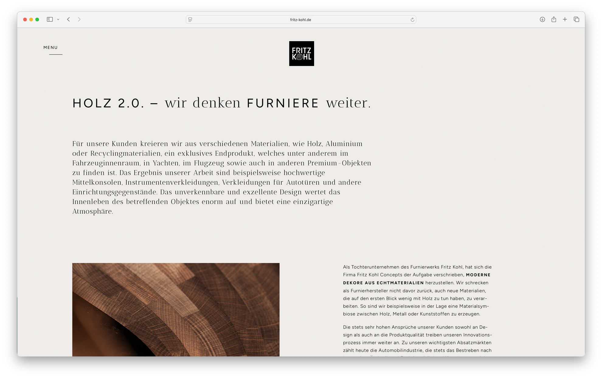Fritz Kohl ist ein fränkischer Hersteller hochwertigster Furniere mit weltweiter Präsenz. Zu ihren internationalen Kunden zählen exklusive Automobilmarken, Luxuslabels, Inneneinrichter, Instrumentenhersteller und viele mehr.